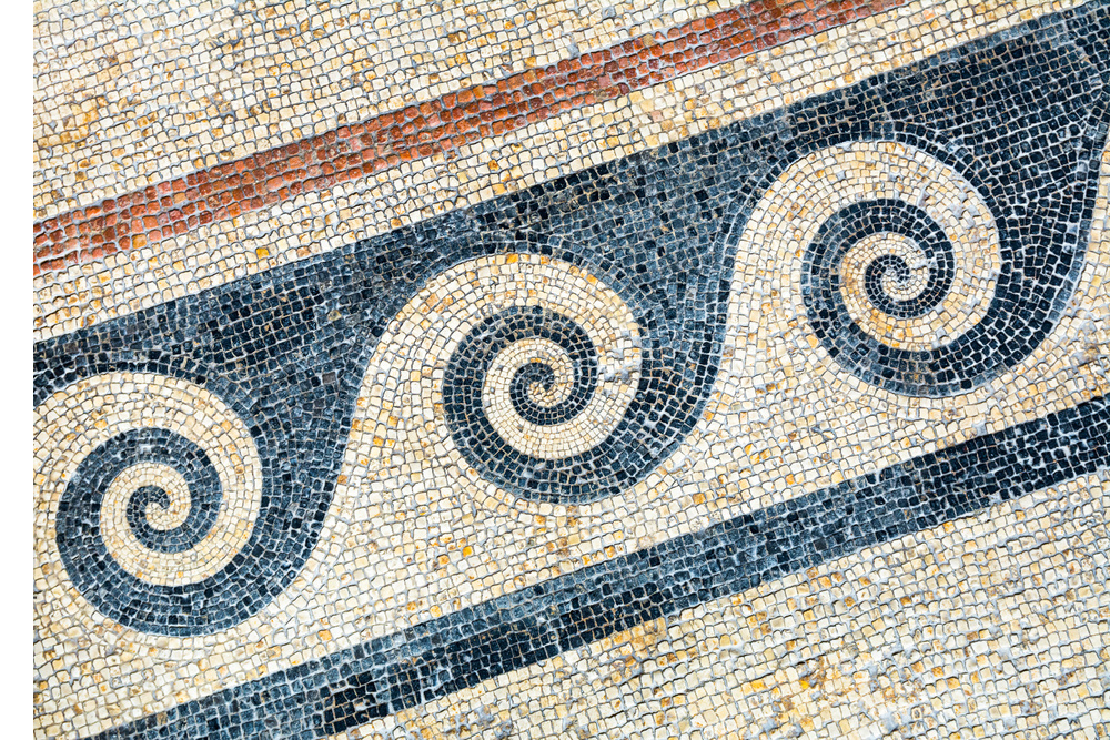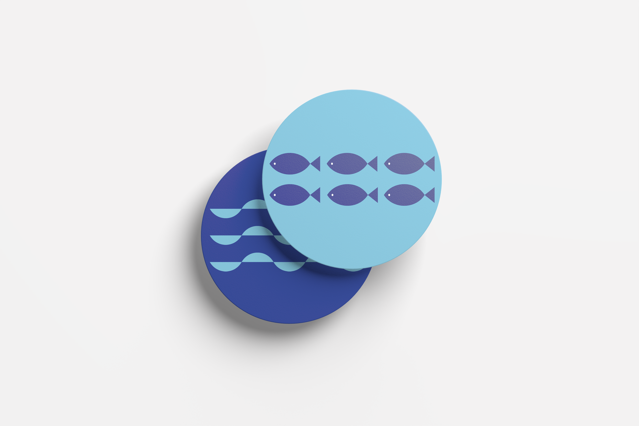 I have crafted a modern interpretation of ancient mosaics for the secondary graphics. I was influenced by the strong depiction of the wave movements in the mosaics, to capture the ebbs and flows of the Mediterranean sea.