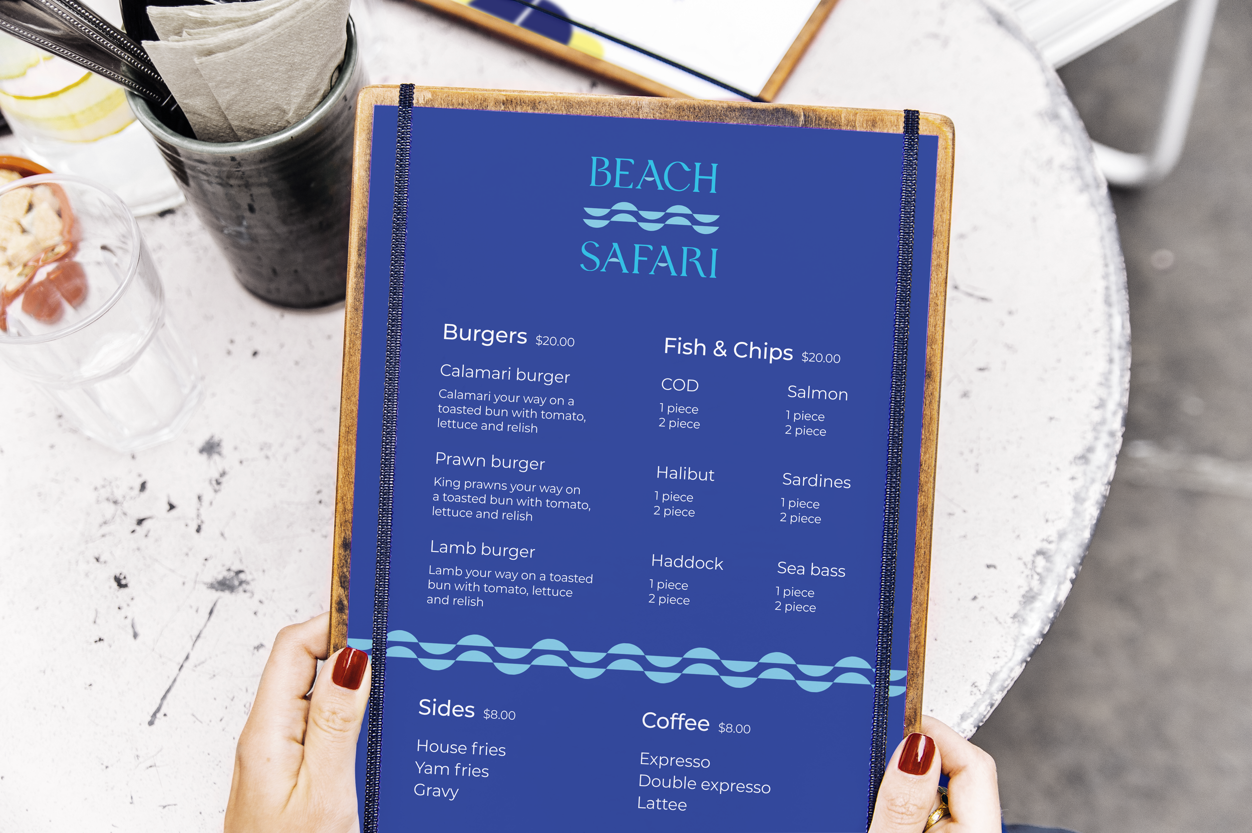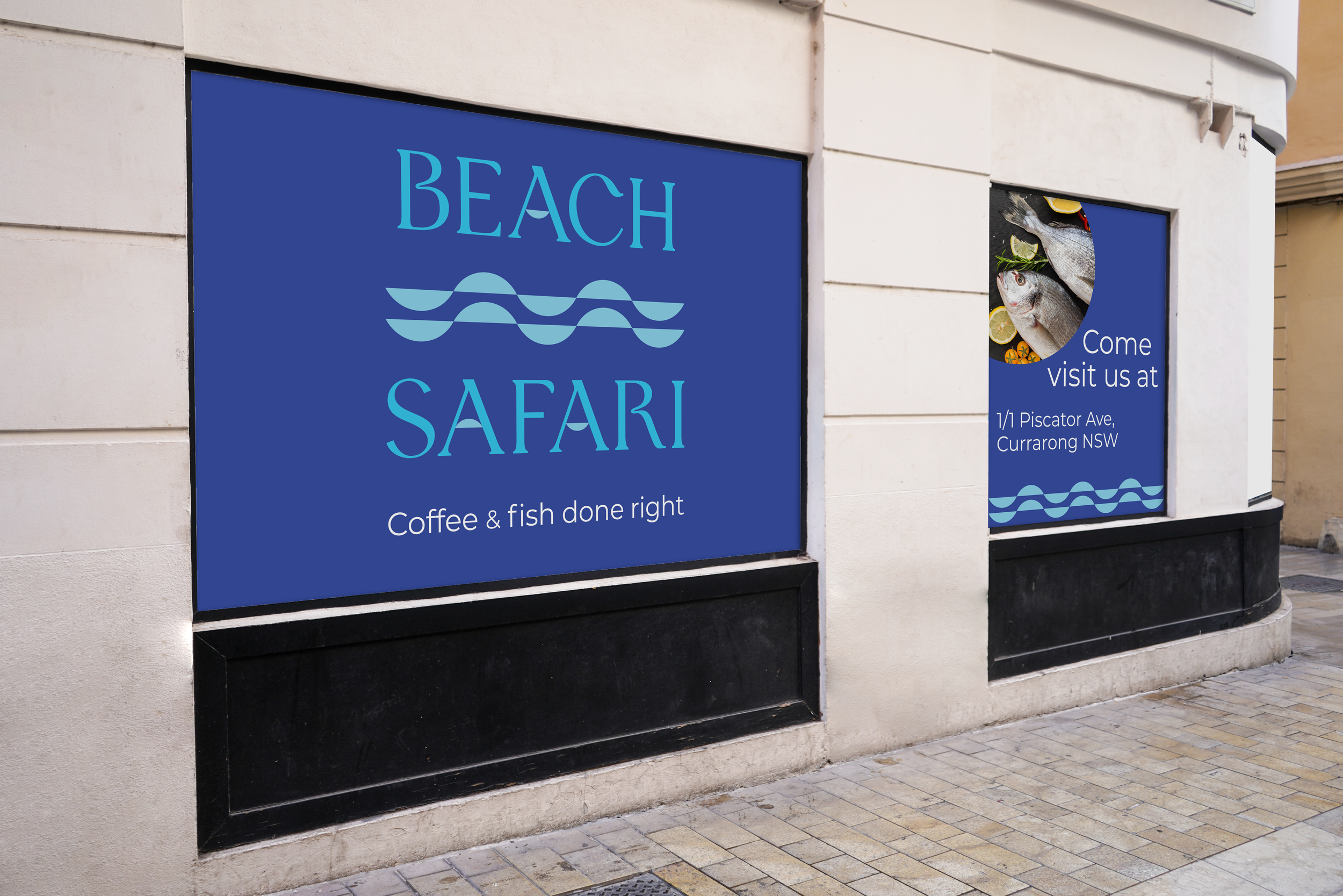 I have utilised a fresh and modern beach style, to present Beach Safari as an inviting holiday destination and make customers feel welcomed. The ocean shades of blue have been used to create a feeling of escape.